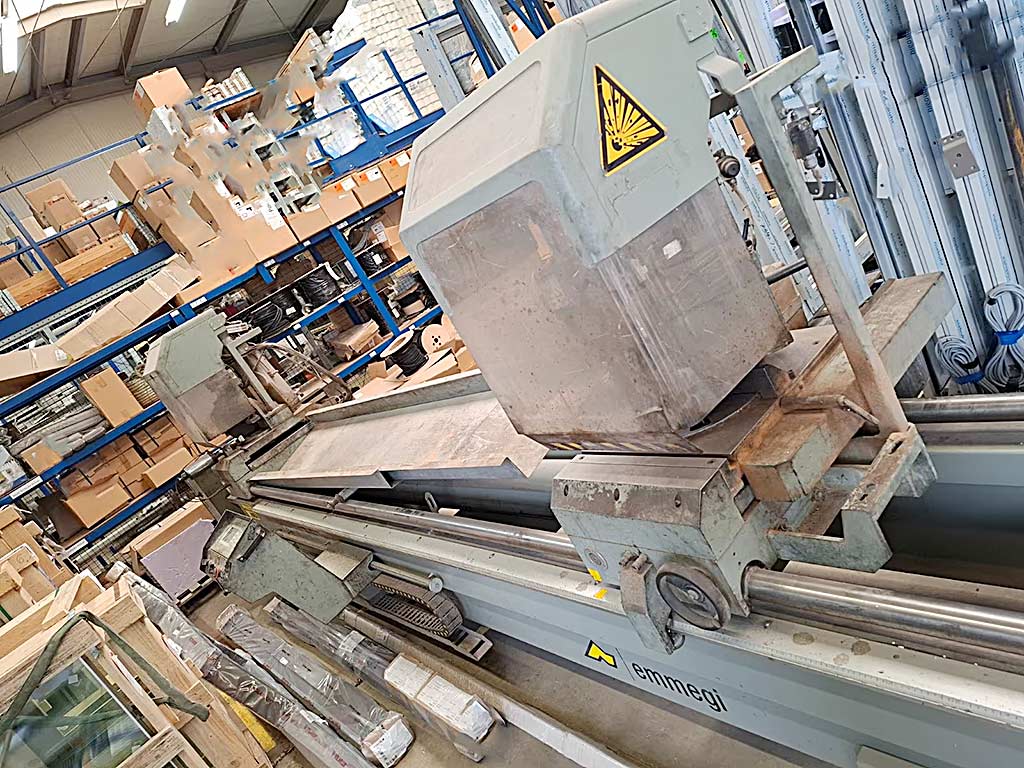 | Opis A double-head miter saw Emmegi for cutting metal and profile material is available. Saw heads: 2, saw blade diameter: 350mm, max. cutting length: 4000mm, cutting range: 130mm, saw blade speed: 2820rpm. Machine dimensions X/Y/Z: approx. 5000mm/1800mm/2000mm, weight: approx. 1600kg. Documentation available. On-site inspection is possible. |