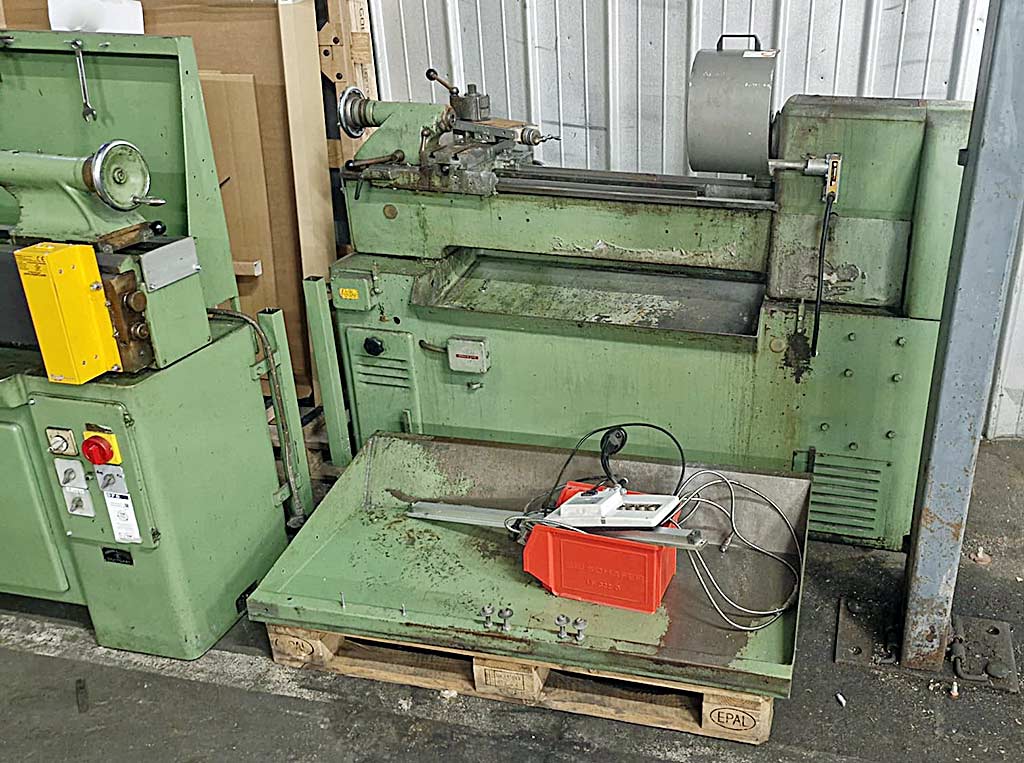 | Opis Two lead and feed screw lathes by Weiler are available. 1) Weiler Condor VS-2, distance between centers: 800mm, center height: 155mm, swing diameter over bed/cross slide: 330mm/160mm, speed: 2800rpm, machine dimensions X/Y/Z: approx. 1900mm/900mm/1500mm. 2) Weiler Praktikant M, distance between centers: 650mm, center height: 160mm, swing diameter over bed/cross slide: 320mm/175mm, machine dimensions X/Y/Z: approx. 1700mm/1000mm/1700mm, weight: approx. 700kg. Both machines show isolated individual functional limitations, but are operational. Documentation available. On-site inspection is possible. |
