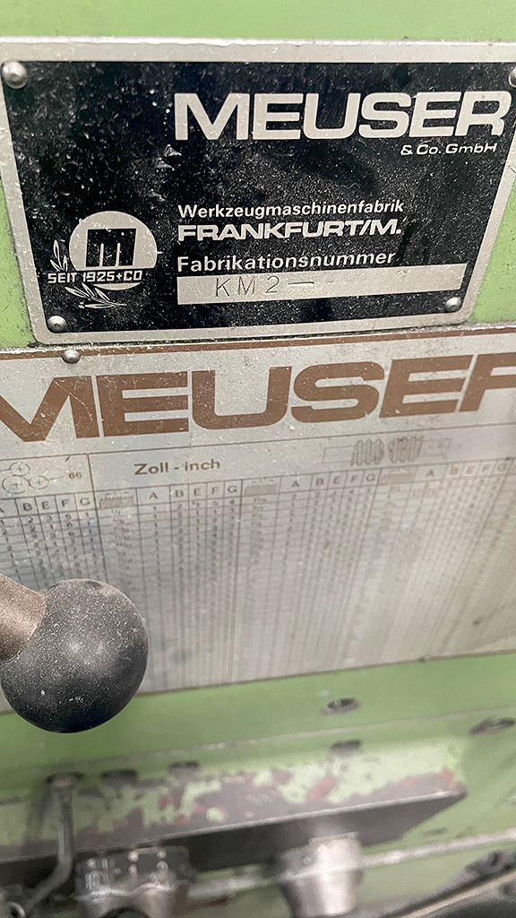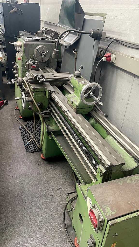 | Opis Conventional Meuser KM 2 engine lathe with lead screw and feed rod. Center height X/Y approx. 230mm/460mm, spindle bore: 62mm, speed range: 25-1600rpm, thread cutting: Meuser universal gearbox. Inspection by appointment possible. |
