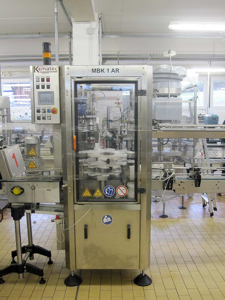 | Opis Some plant components from a bottle filling plant are available. 1) Indexed rotary bottle capper Kematec MBK 1 AR. 2) Belt station Cornelis Costamat-PP-1. 3) End-of-line packaging machines Normpack. An on-site inspection is possible. The offer is not a complete line, but plant components that have been decommissioned. |