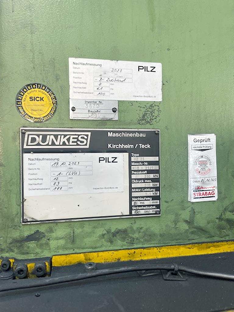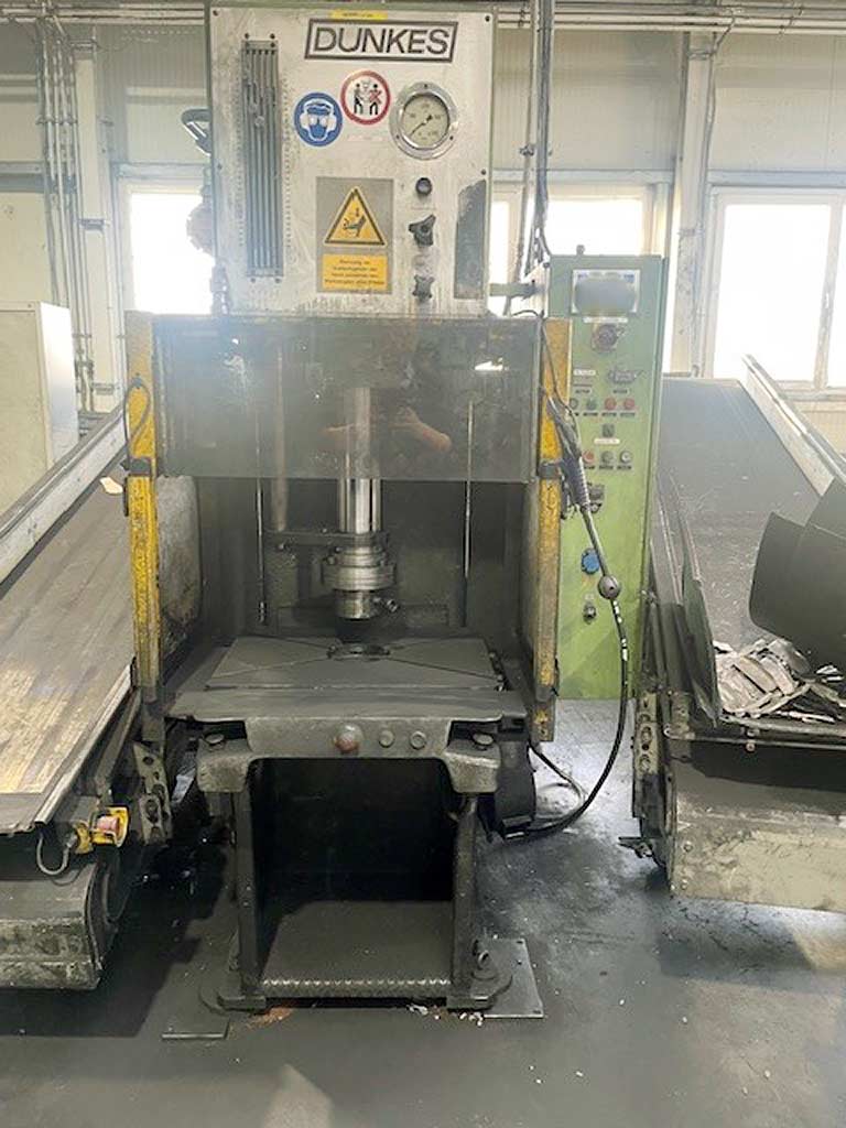 | Opis Press force: 250kN, Operating pressure: 280bar, Stroke: 300mm, Installation height: 500mm, Reach: 250mm, Oil filling: 280l, Ram speed: 105mm/s, Weight: approx. 2550kg. Documentation available. An on-site inspection is possible. |