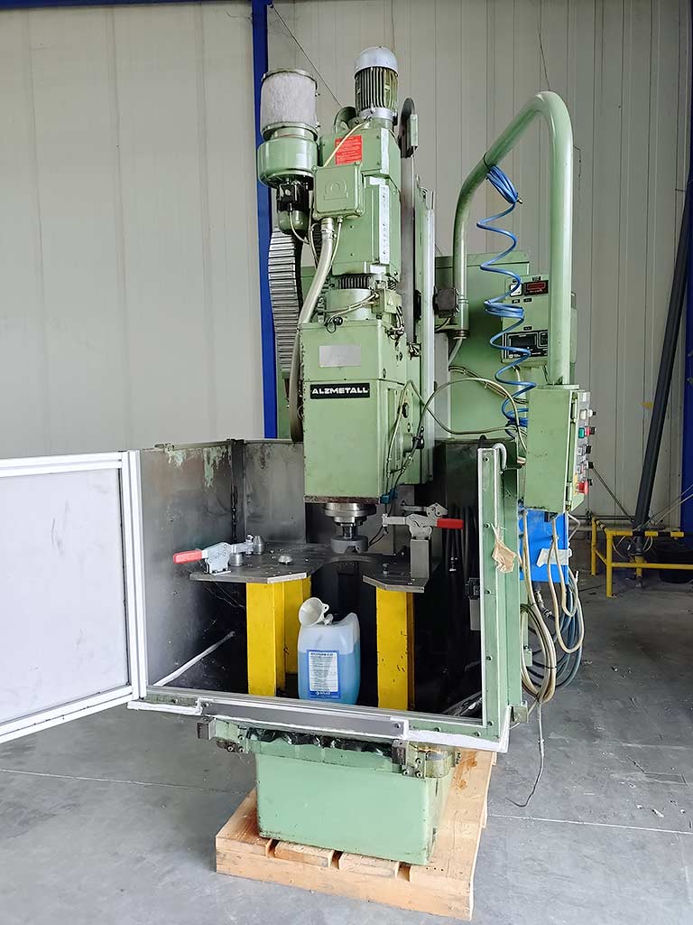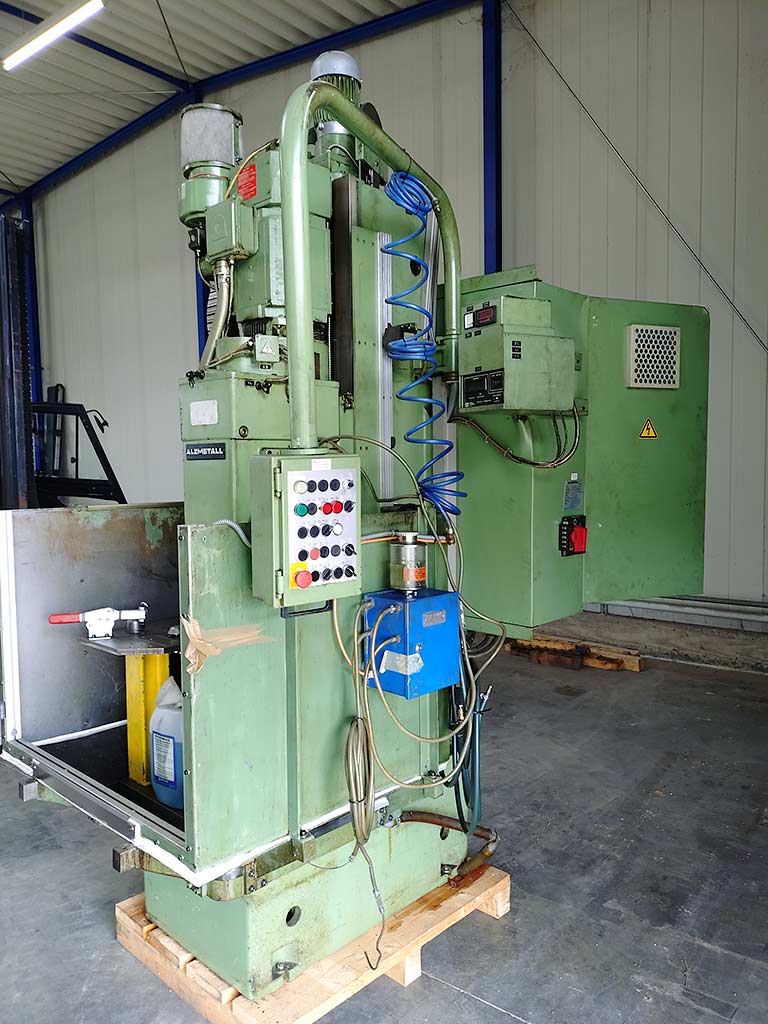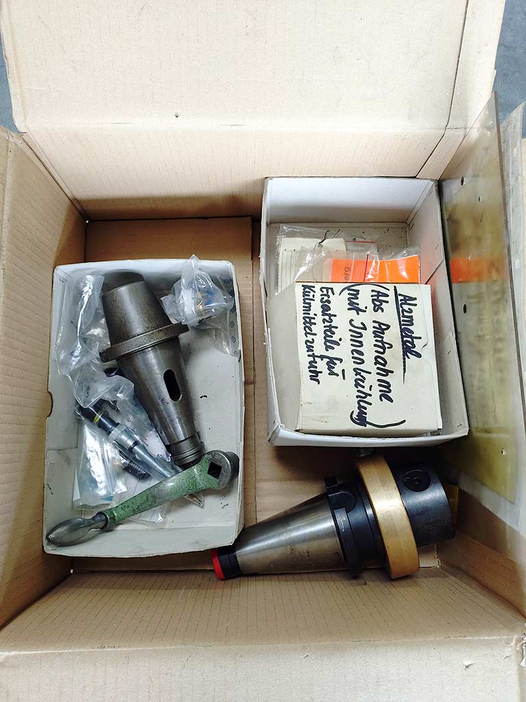 | Opis Drill diameter: 65mm, outreach: 380mm, tool holder: SK50, speed: 1600rpm, table dimensions X/Y: 630mm/500mm, rapid traverse Z: 4750mm/min, drilling capacity steel/cast iron: 65mm/80mm, thread cutting capacity steel/cast iron: M68/M72, machine dimensions X/Y/Z: approx. 1500mm/1200mm/2950mm, weight: approx. 2000kg, control: PLC. Including three tool holders, safety enclosure, minimum quantity lubrication system, spare parts and digital readout. Without milling head attachment and drill crown. The control cabinet has optical damage. Documentation available. An on-site inspection is possible. |
