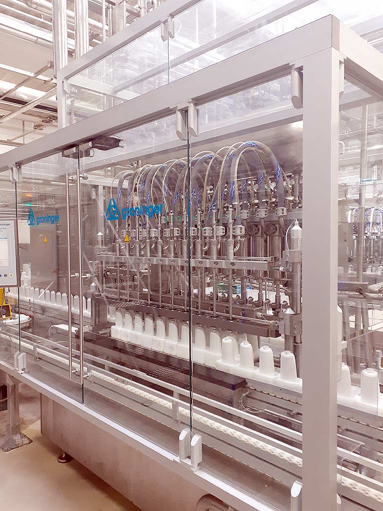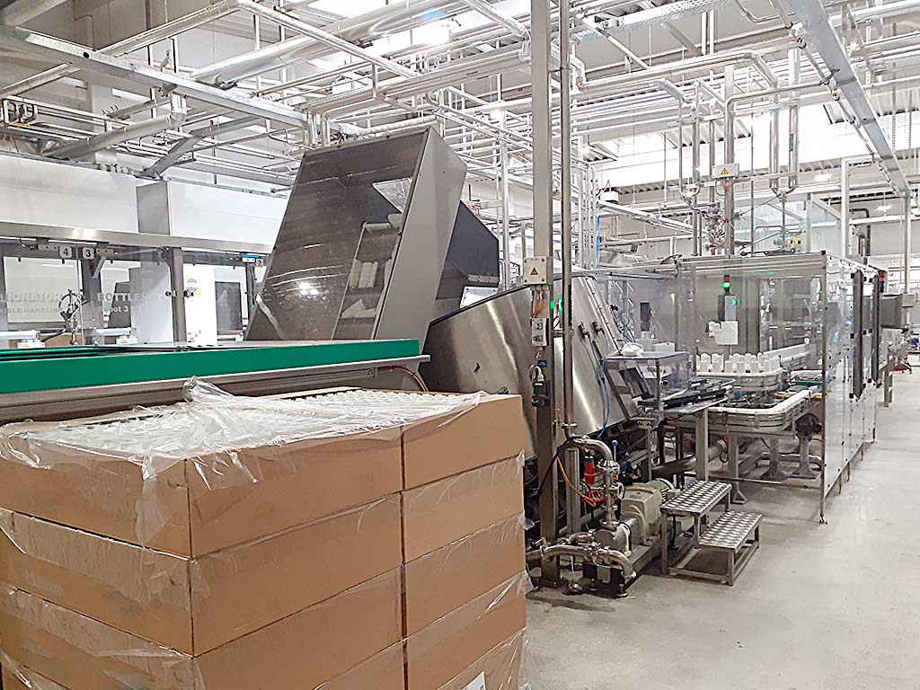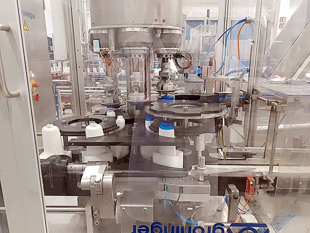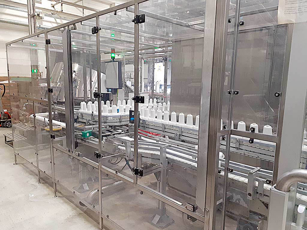 | Opis A complete Groninger bottle filling line is available. 1) Bottle unscrambler Groninger ZSB 2000, year of manufacture: 1995. 2) Filling machine Groninger DFV 1000Q, year of manufacture: 2013, filling stations: 10, additional function: transverse transfer system, output: approx. 9000/h, dosing range: 5ml-1000ml, container height range: 30mm-250mm, transport cup dimensions X/Y: 108mm/80mm, operating hours: approx. 24100h. 3) Cap sorter Groninger ZSK 1500, year of manufacture: 1995, sorting disc speed: 25rpm. 4) Capping machine Groninger KVK 106, year of manufacture: 1995, max. capping output: 9000/min, max. container diameter: 100mm, max. container height: 200mm, machine dimensions X/Y/Z: approx. 3400mm/1450mm/2550mm, weight: approx. 1500kg. 5) Discharge conveyor Groninger, year of manufacture: 1995. Documentation available. An on-site inspection is possible. |