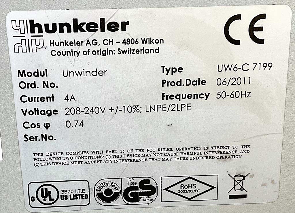 | Opis A digital roll label color printing machine Xeikon including a Hunkeler unwinding module is available. Resolution X/Y: 1200/3600dpi, max. print width: 322mm, material width range: 200mm-330mm, max. repeat length: 55m, max. printing output: 380m²/h, material weight range: 40g-350g/m². Unwinding unit Hunkeler UW6-C 7199, year of manufacture: 2011, max. roll diameter: 1370mm, web width: 520mm, web speed: 220m/min, max. roll weight: 600kg. Documentation available. An on-site inspection is possible. |